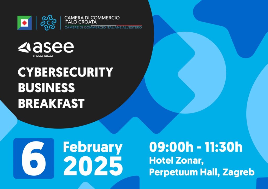 Carissimi Soci, Vi invitiamo al nostro primo Business Breakfast dell’anno! Giovedì 6 febbraio, 9:00 – 11:30 Hotel Zonar, Sala Perpetuum, Trg Krešimira Ćosića 9, Zagabria Durante l’evento approfondiremo la Direttiva NIS2 dell’UE sulle misure fondamentali per la cibersicurezza nelle imprese. Gli esperti di ASEE Solutions (Gruppo ASEE), leader nello sviluppo di soluzioni IT personalizzate, spiegheranno […]