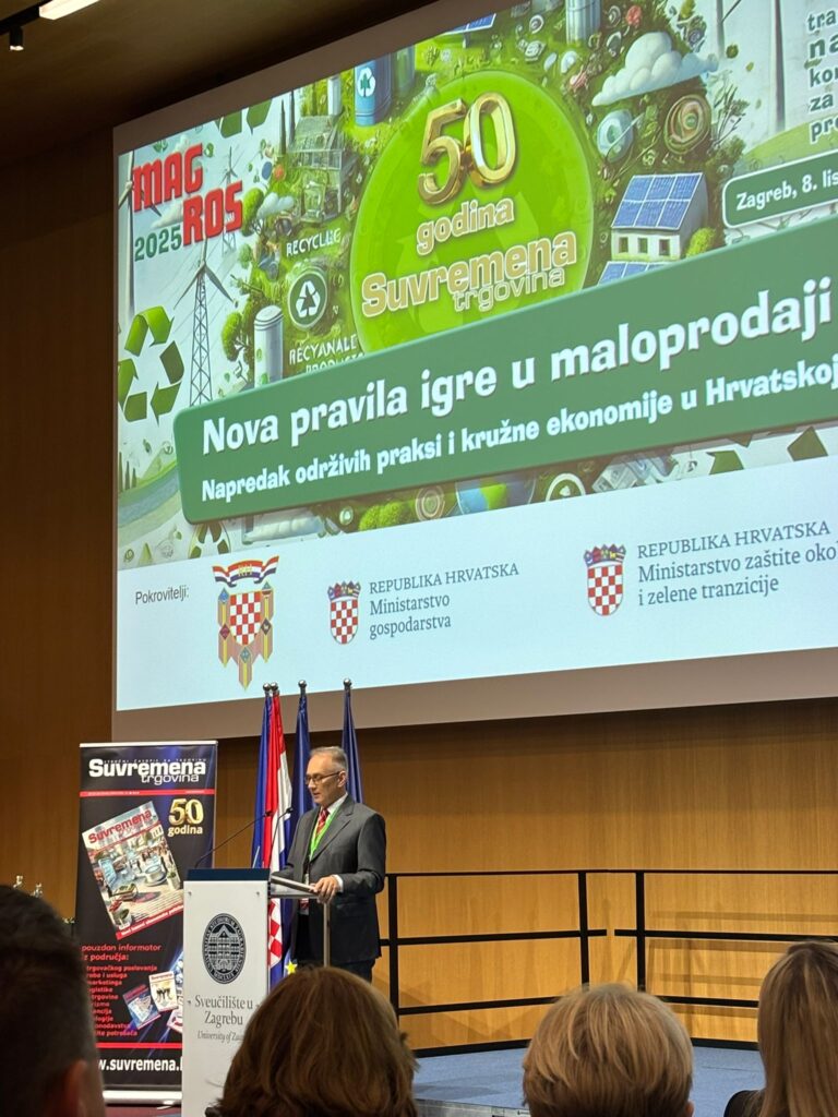 In qualità di partner, la Camera di commercio italo croata ha partecipato alla conferenza Magros anche quest’anno, sotto la guida della direttrice generale Andrea Perkov che ha tenuto un discorso di benvenuto. Oltre alla direttrice Perkov, hanno portato i saluti anche Srećko Sertić, direttore e caporedattore di Suvremena trgovina, il prof. dr. sc. Stjepan Lakušić, rettore dell’Università di Zagabria che ha ospitato l’edizione di quest’anno, Robert Fućak, membro del Consiglio di Amministrazione dell’Unione delle associazioni dei piccoli commercianti della Repubblica di Croazia, la mr. sc. Martina Ciglević, delegata del Presidente della Repubblica di Croazia e i rappresentanti del Ministero croato della Protezione dell’Ambiente e della Transizione Verde e del Ministero croato dell’Economia.