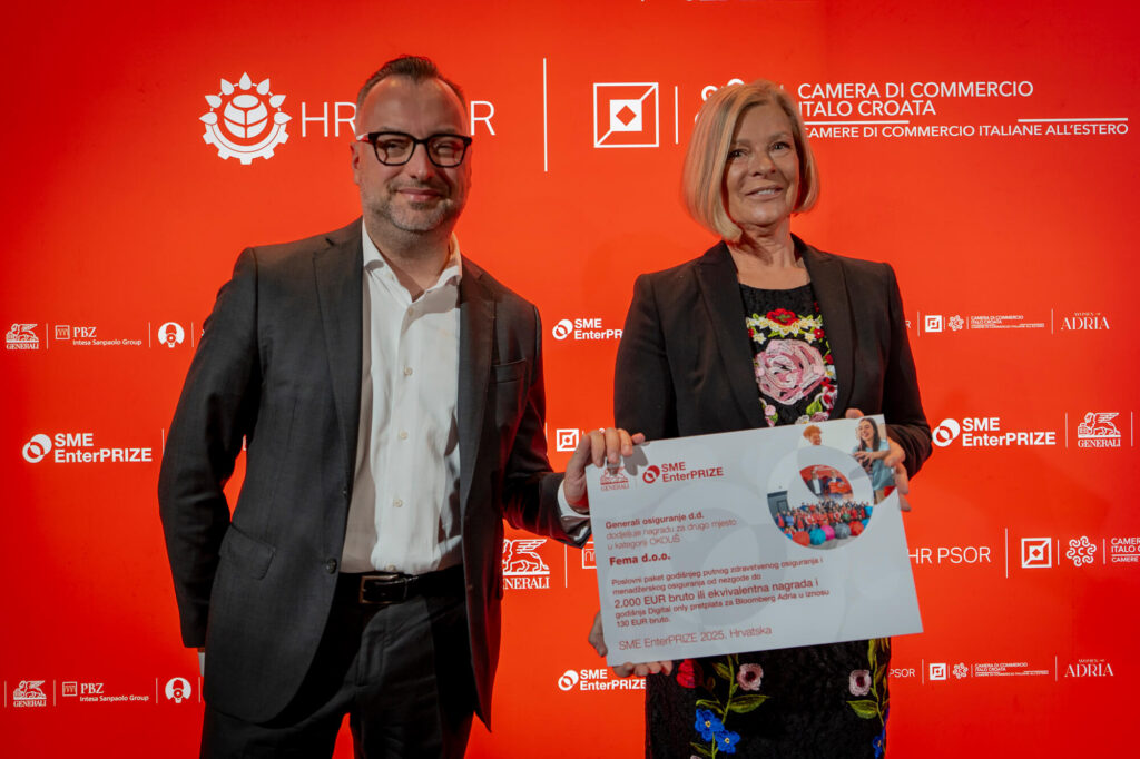 Zagabria, 27 novembre 2025 – In un’atmosfera ispirativa e con grande interesse della comunità imprenditoriale, Generali osiguranje d.d. insieme ai partner dell’iniziativa – Privredna banka Zagreb, Udruga Glas poduzetnika, Hrvatski poslovni savjet za održivi razvoj, la Camera di Commercio Italo-Croata e la rete Women in Adria – ha proclamato i vincitori dell’edizione di quest’anno del concorso SME EnterPRIZE.