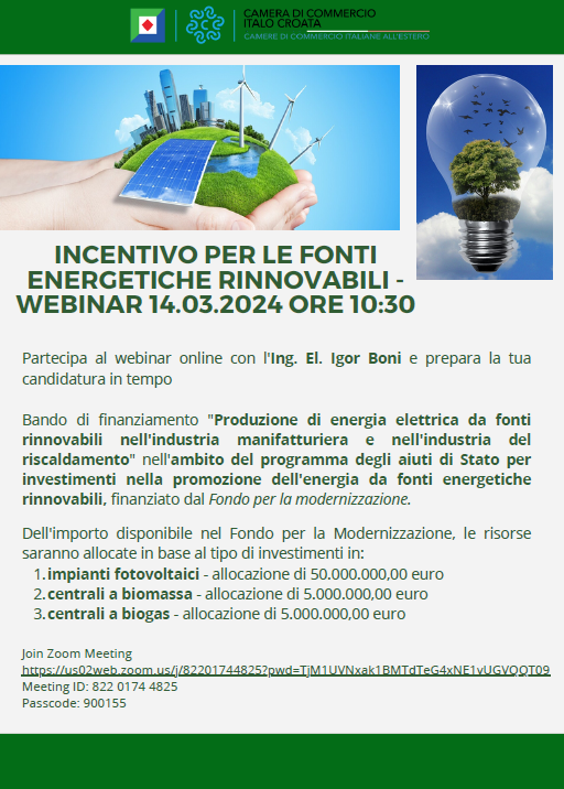 Incentivo per le fonti energetiche rinnovabili – WEBINAR 14.03.2024 ore 10:30
