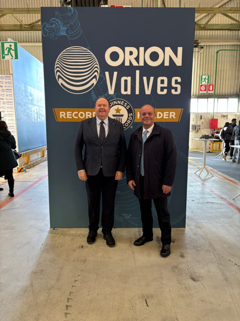 L’11 dicembre 2025 Orion Valves ha ottenuto la certificazione ufficiale del Guinness World Records per la Wedge Gate Valve più grande mai costruita, realizzata a Trieste nell’anno del 75° anniversario dell’azienda. La certificazione è stata annunciata dal giudice Guinness Richard Stanning, dopo la misurazione del diametro (114 pollici).