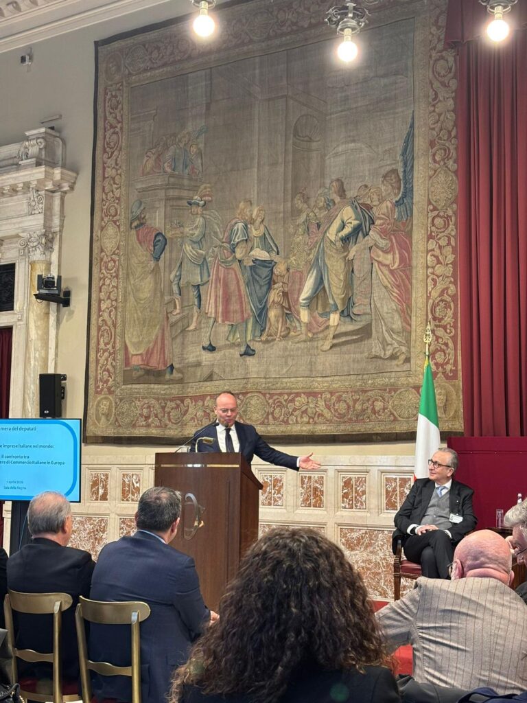 Nel pomeriggio, i lavori sono proseguiti con la visita istituzionale alla Camera dei Deputati, dove, presso la prestigiosa Sala della Regina, si è tenuto l’incontro dal titolo “A fianco delle imprese italiane nel mondo: incontro tra Parlamento e Camere di Commercio Italiane in Europa”.